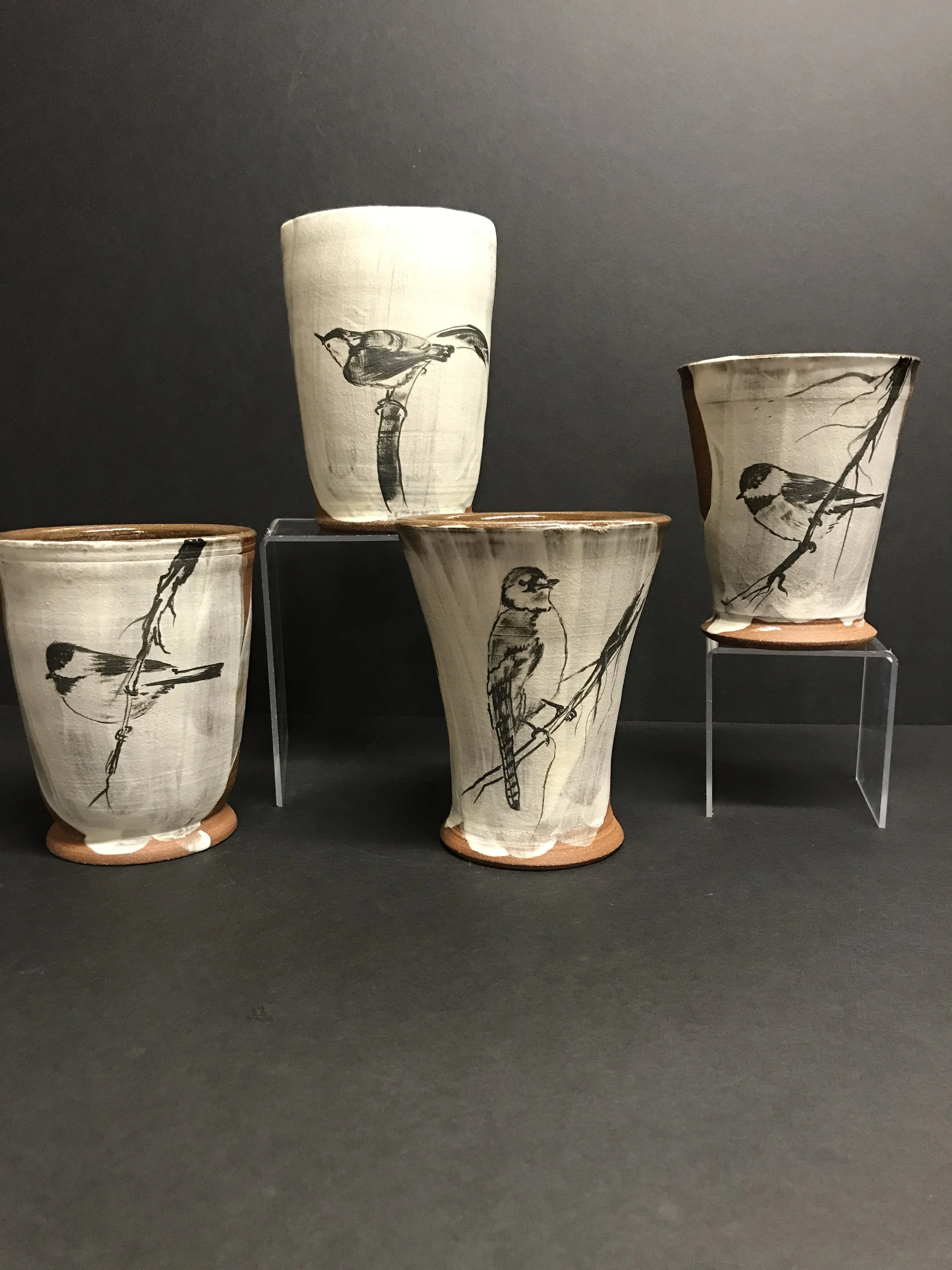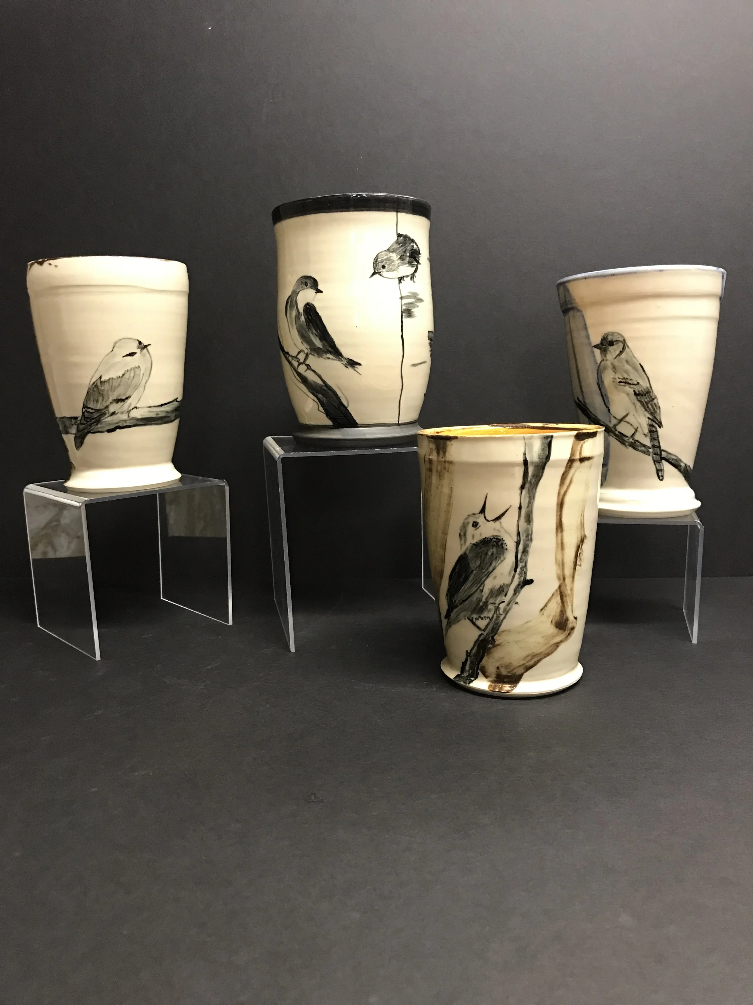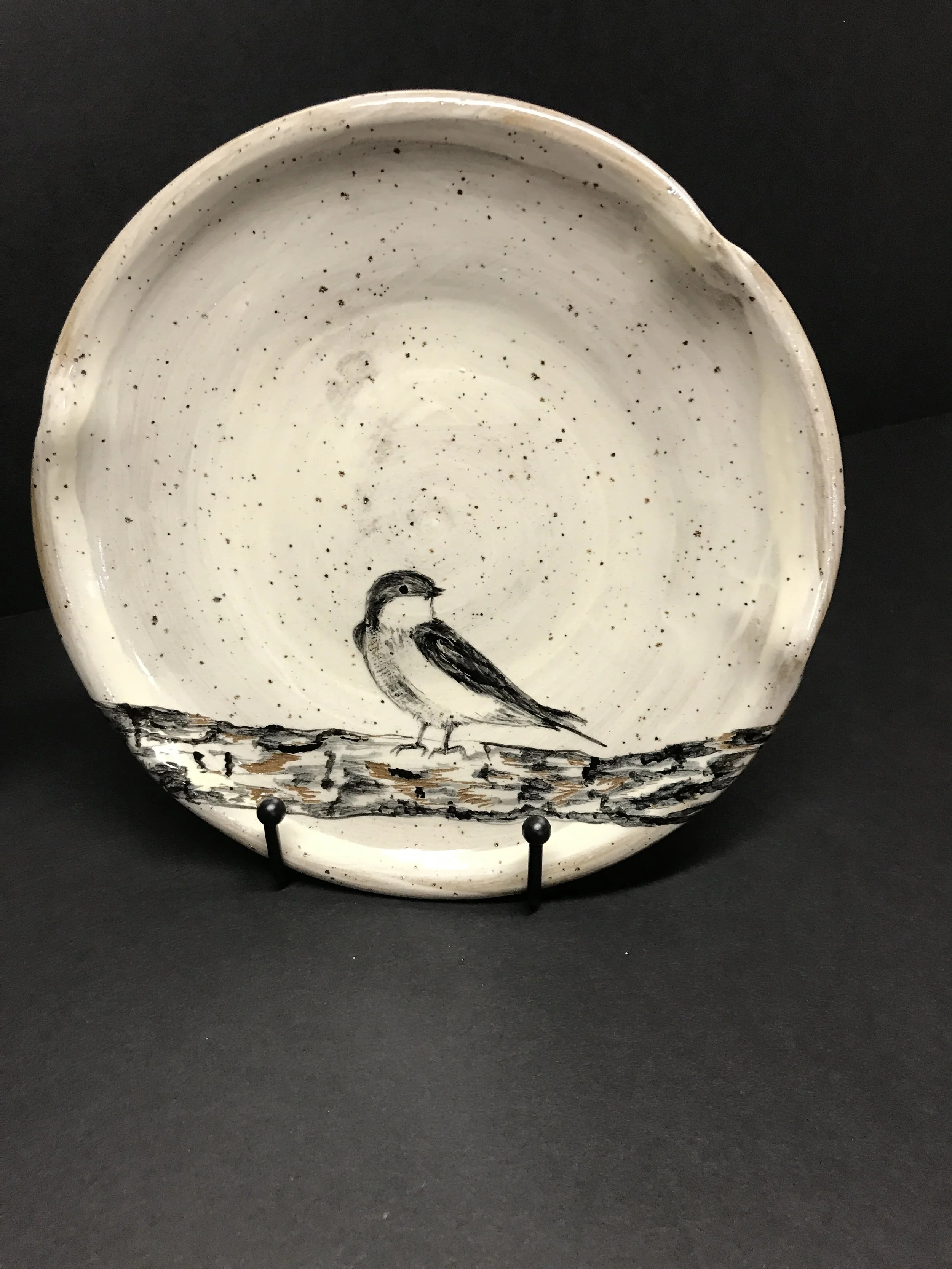 My husband is a avid birder and loves taking pictures of birds in the neighborhood on his morning walks. All the birds painted on my bird paintings pottery collection have come from the pictures he has taken. Painting birds on ceramic can be challenging. The background, plumage and feather details are critical.